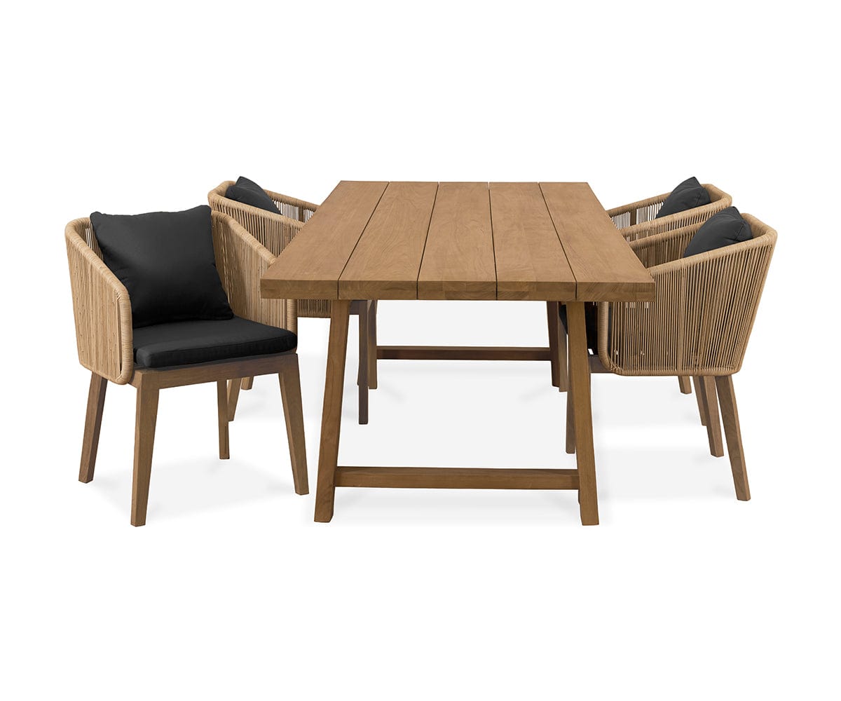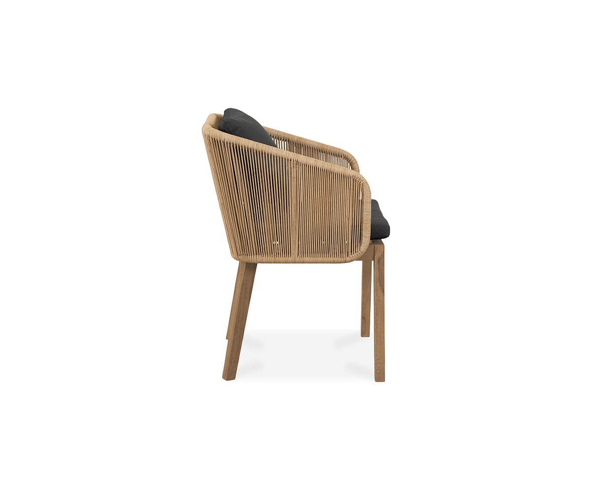 Avec son profil épuré et moderne et son dossier en corde intrigant, la chaise de salle à manger d'extérieur Cellini rehaussera instantanément votre espace extérieur. Sa structure en teck de haute qualité lui confère une durabilité exceptionnelle, tandis que son coussin est recouvert d'un tissu résistant aux intempéries, pour une utilisation durable et un bel aspect. Associez-la aux autres meubles de la collection d'extérieur Cellini pour une configuration personnalisée, facile d'entretien.