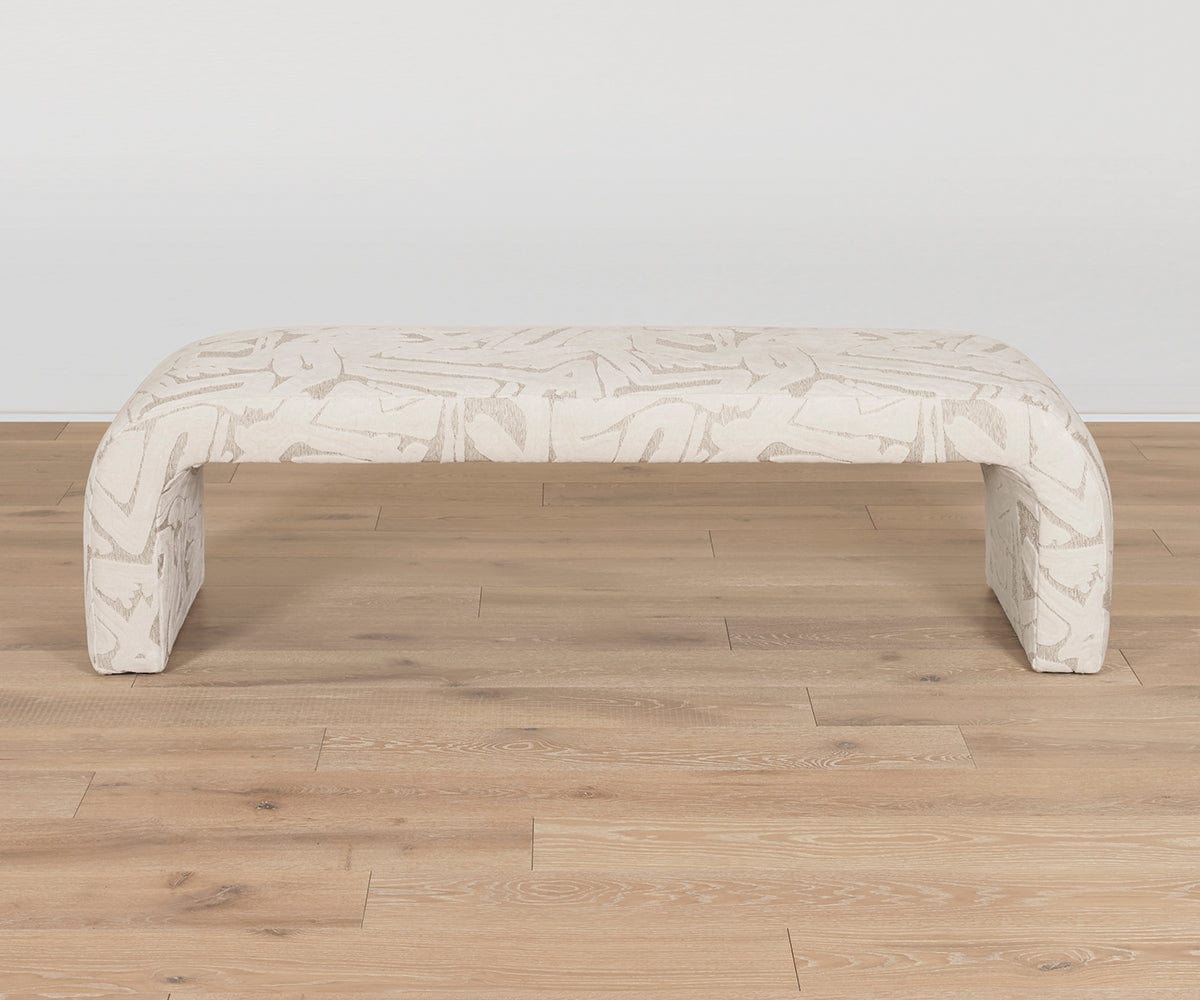 Le banc Eliseo, entièrement rembourré, présente une belle silhouette profilée pour un look contemporain qui s'harmonise parfaitement avec le lit Eliseo et le canapé Ennio. Disponible sur commande. Fabriqué aux États-Unis.