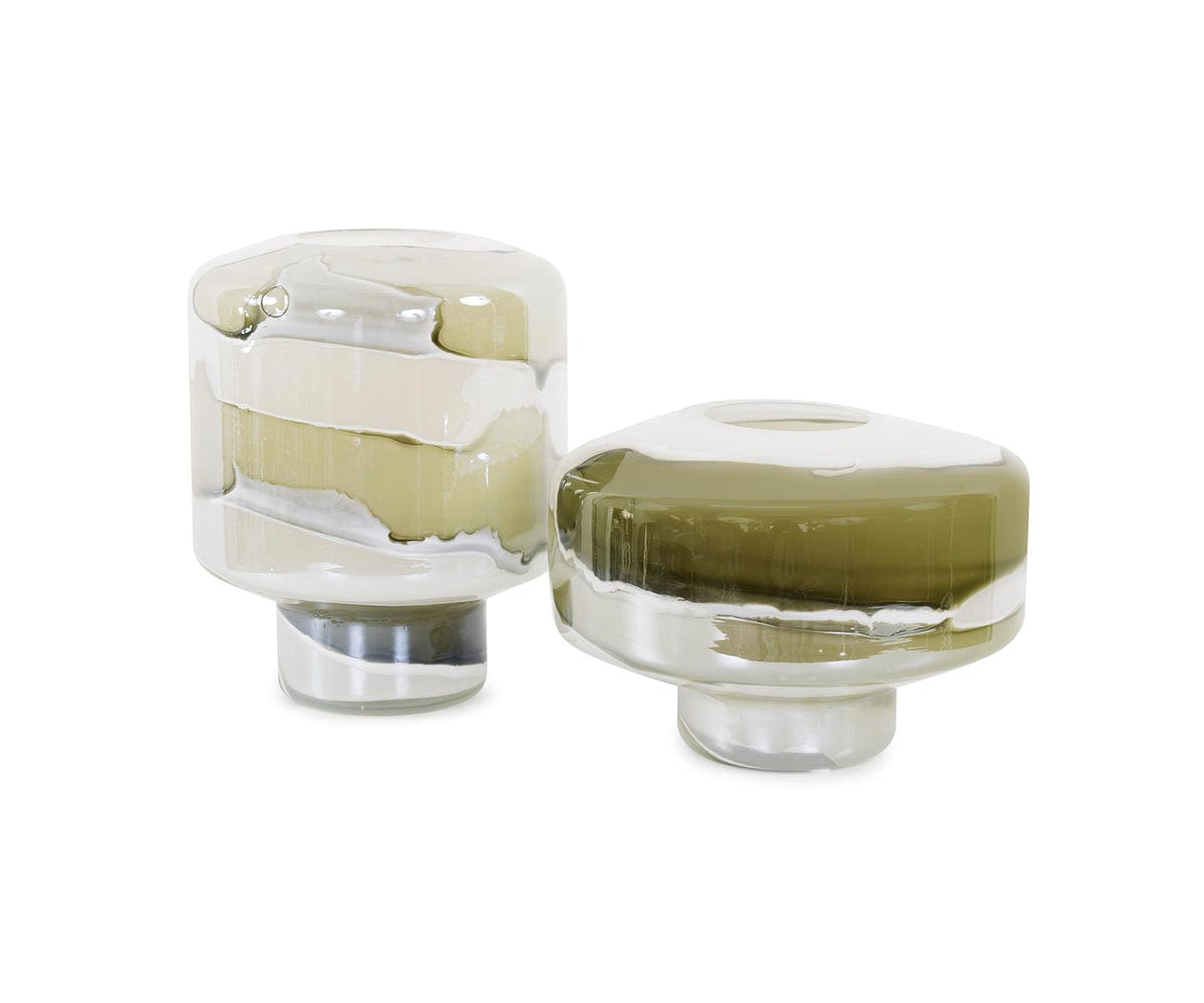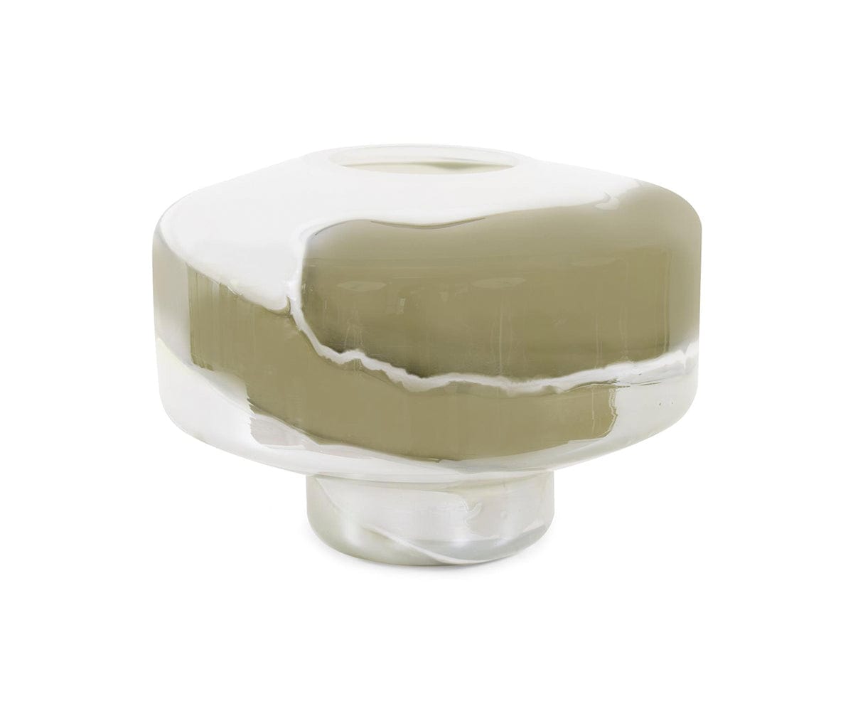 Le grand vase Malin présente des nuances neutres sereines superposées dans un design abstrait saisissant et une forme cylindrique audacieuse.