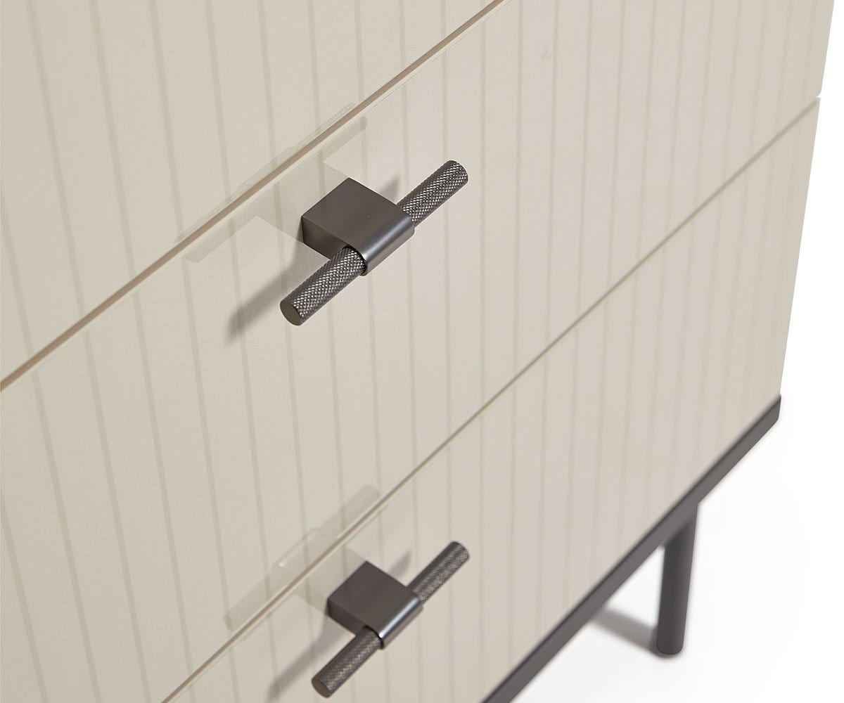 Fabriquée en Italie, la commode haute Niccola est idéale pour ranger vos essentiels de chambre. Élégante et raffinée, elle apporte une touche de luxe épuré à votre espace. Ses rayures fines et ses finitions en métal brossé lui confèrent une texture élégante et une touche de glamour contemporain. Sa finition brillante et soignée témoignent d'un savoir-faire artisanal haut de gamme.
